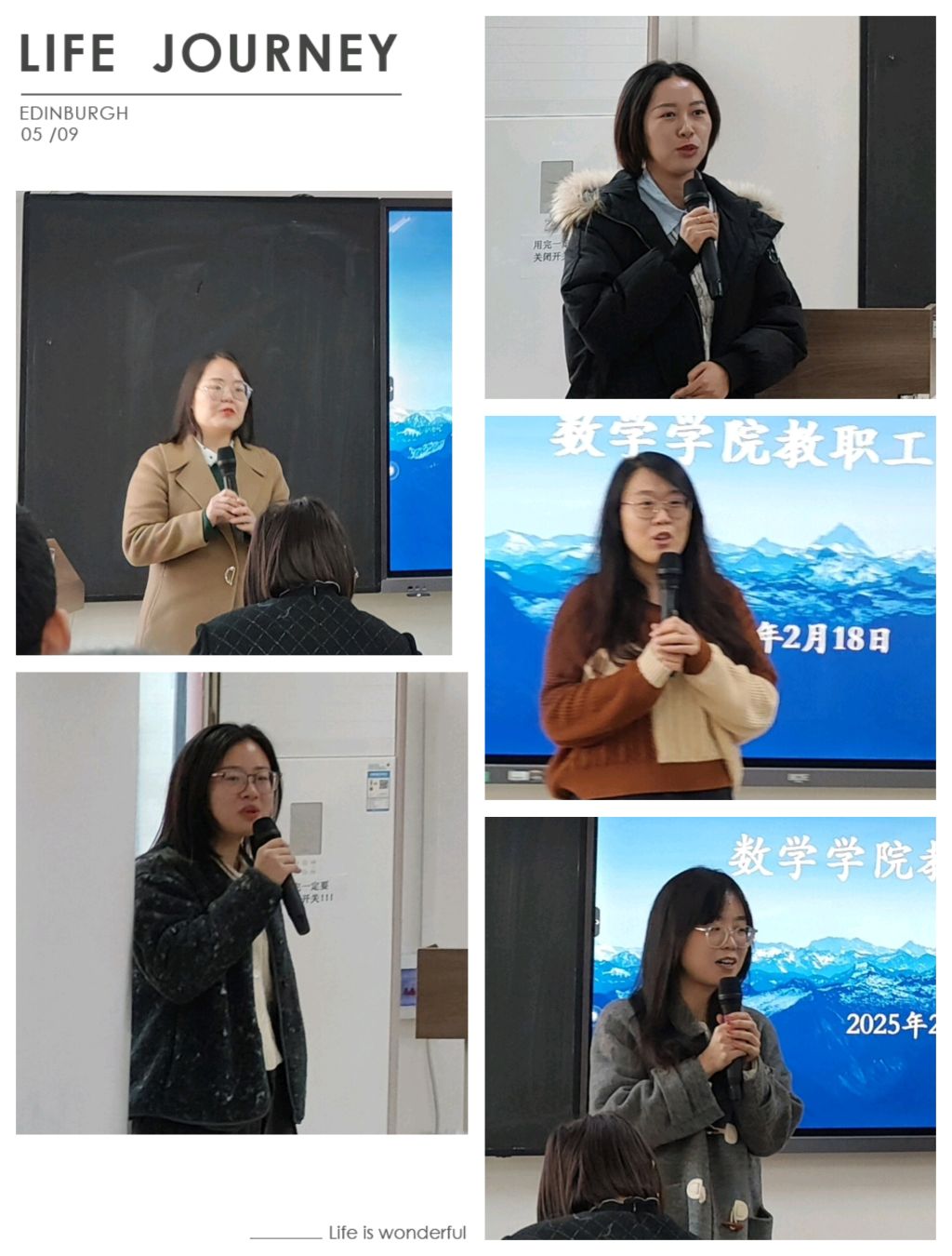 会议第三项,2024年新入职的关夏夏、俞秀芳、刘佩尧、王晶、赵孟洁等老师依次上台自我介绍。新教师们展现出的蓬勃朝气与专业素养,为学院发展注入新活力。