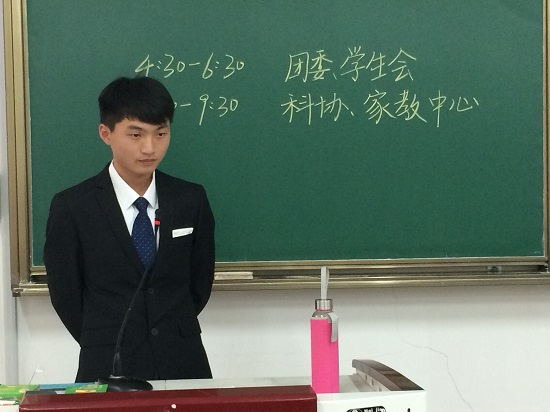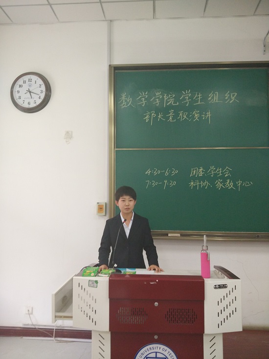 下午4:30分,在团委副书记杨璐宣布大会开始之后,各竞选者的演讲也随即展开。竞选者结合自己这一年在学生组织的工作情况,分析自身的优势,解说对学生组织的认识、自身经验的积累以及今后的工作思路等,从各方面展开竞职演讲,竭力表现优势之处。不时有精彩的演讲赢得掌声阵阵。主席们在每一位演说者结束后,都针对性地进行提问,深入了解其工作掌握情况与发展思路。竞选者们轮流按顺序上台演说,现场气氛紧张而又热烈。