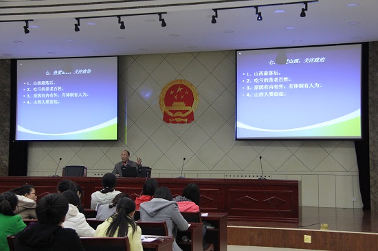 本讲,孙教授以《何以解忧,唯有改革》为主题,诙谐而不失深刻地阐明了改革在我党建成及发展过程中所起的举足轻重的历史作用。首先,孙教授为大家明确了马克思主义的本质特征,并根据“二级火箭理论”,生动再现了我党几位总书记在历史关键时刻所做出的正确决定,就四大思潮,五个团队,发表了自己独特的见解,提倡言论自由化,并对山西现阶段塌方式的腐败等问题进行了深刻反思和严厉批评,呼吁大家努力奋斗,提高自身素质,投身于我党建设当中。