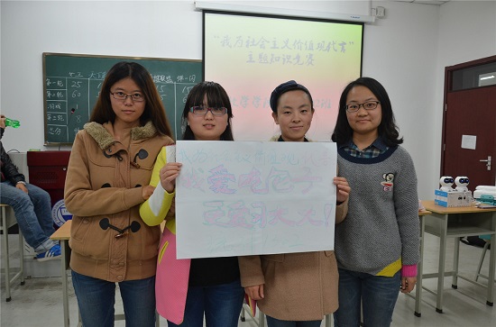 2014年11月9日,新葡萄官网统计1302班开展“我为社会主义核心价值观代言”主题知识竞赛活动。本次竞赛活动分为填空题、选择题、简答题和游戏四个环节。全体成员分成五支队伍,神采奕奕,气氛活跃,在答题过程中进一步了解了社会主义核心价值观主要内容和精神,充分认识了中国特色社会主义理论体系的重大意义。本次活动切实增强了全体学生与时俱进的能力,全面加强班级学风和团风建设,加深了同学之间的情谊。