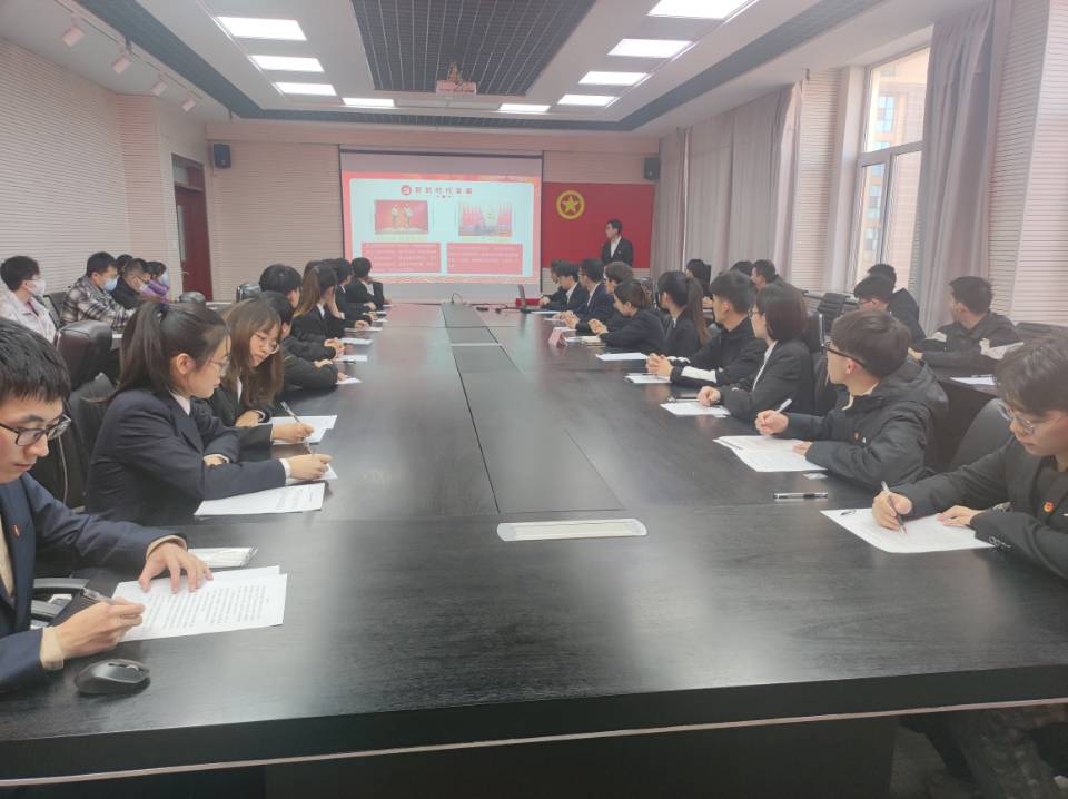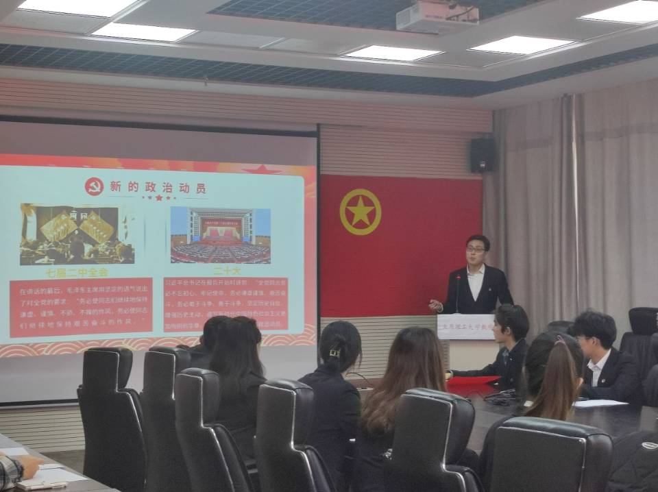 山西省优秀共青团员,理论宣讲团成员范振宙,受团支部邀请带领大家进行会前学习并进行理论宣讲。宣讲以“学习党的二十大,青春勇担当”为主题,从新的政治宣言、新的时代答案、新的行动纲领和寄语青年四个篇章带领团员们重新回顾并深入学习了习近平总书记的重要讲话精神。