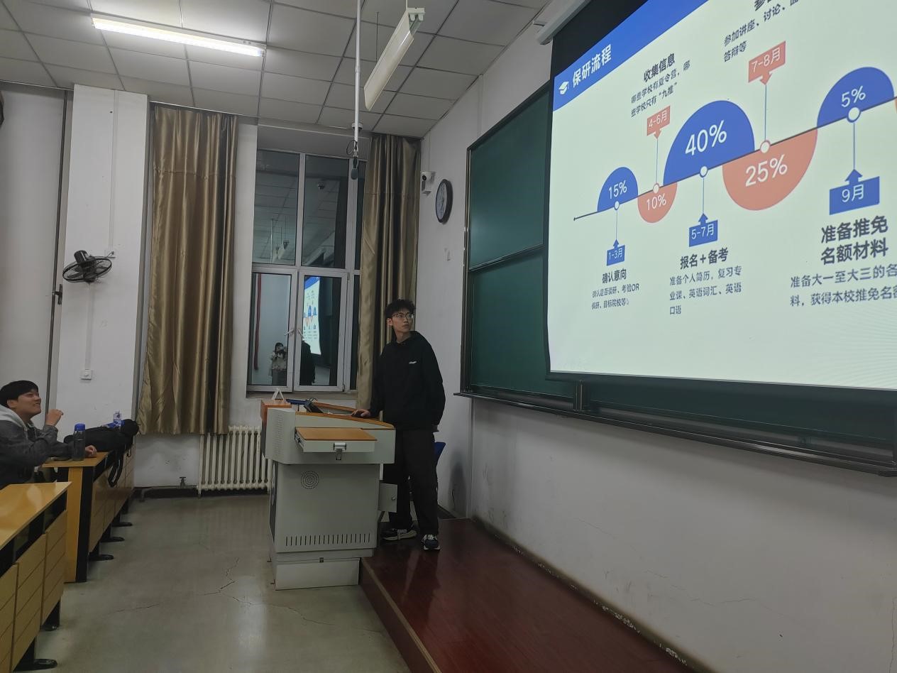 支教保研的张圣豪同学向大家介绍了研究生支教团,讲解了研究生支教团的选拔政策、选拔条件、现场考察流程,并对支教培训的内容以及支教地进行了详细介绍。