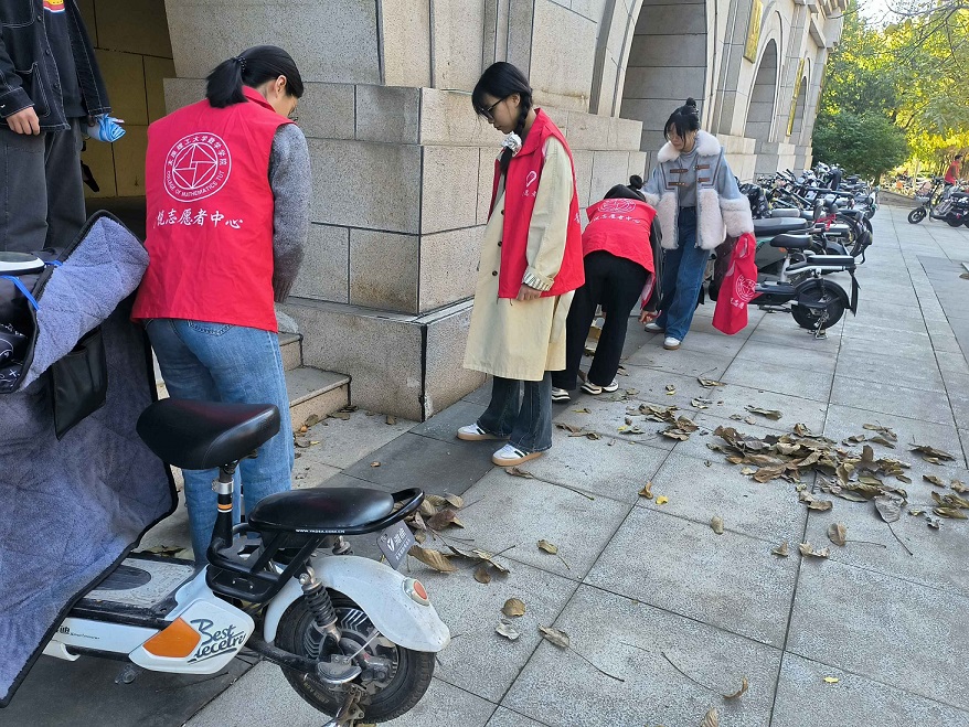 活动中,志愿者们身着统一的志愿服,手持清洁工具,分工配合,对学院及周边进行了彻底地清洁。大家首先对常师贞先生铜像及小广场进行了仔细地清洁,用抹布细心擦拭塑像上的灰尘,并扫去周围的落叶。随后,志愿者们清扫了学院一楼大厅及周边的落叶,将路边乱停乱放的车辆进行了归位,并随手捡起掉落的垃圾。在志愿者们的不懈努力下,塑像重新焕发出光彩,学院的环境焕然一新。在清洁过程中,志愿者们热情高涨,积极参与,展现了数院学子的青年担当与风采。