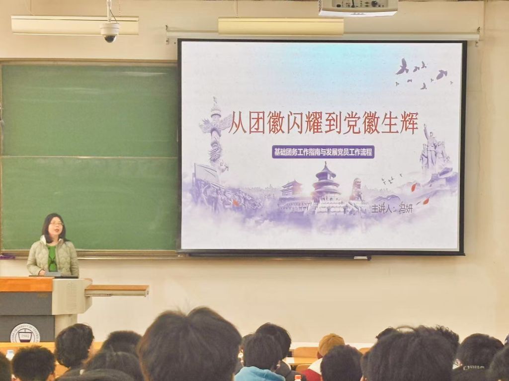 学院团委书记兼学工办主任冯妍以基础团务工作与发展党员流程为核心,从三方面进行授课:一是结合相关文件、政策讲明基层团组织的重要作用;二是详解“三会两制一课”等基础团务的工作规范;三是为同学们梳理发展党员的5个阶段25个步骤,重点介绍了推优、入党积极分子的确定和培养教育、发展对象的确定和考察等工作。她鼓励学员们在学习、生活和工作中对照优秀团员标准严格要求并努力提升自己,争取早日从团徽闪耀迈向党徽生辉的新征程。