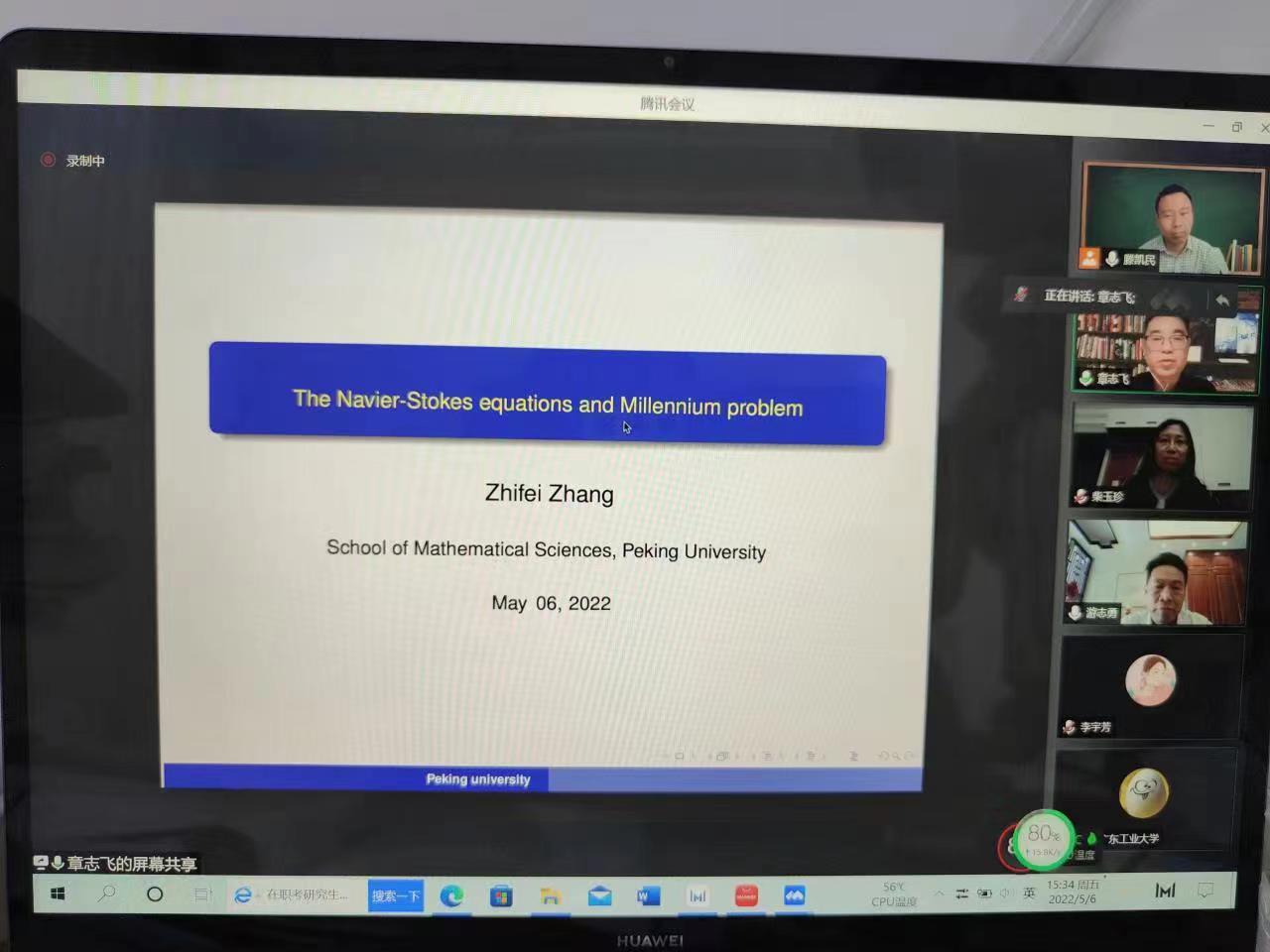 5月6日是新葡萄8883官网amg官网120周年校庆日,新葡萄8883官网amg官网通过线上形式精心准备了丰富多彩的学术盛宴,新葡萄8883官网amg官网邀请北京大学数学科学学院章志飞教授和西北工业大学新葡萄8883官网amg官网聂玉峰教授通过腾讯会议分别作了题为“The Navier-Stokes equations and Millennium problem”和“非稳态非局部问题的POD快速算法”的学术报告,报告会由新葡萄8883官网amg官网校庆负责人游志勇书记主持,新葡萄8883官网amg官网教师和研究生线上参与此次报告会。首先游志勇书记对校庆日举办学术活动的重要意义作了讲话,并介绍了新葡萄8883官网amg官网的办学历史和校庆的相关活动安排。