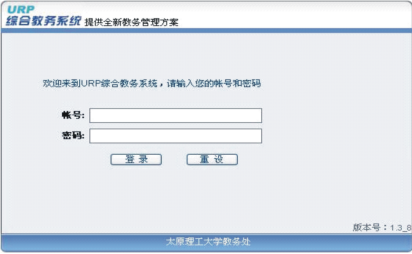 打开IE浏览器,输入新葡萄8883官网amg官网教务处网址(http://jwc.tyut.edu.cn),进入教务处主页。点击页面右下方的“综合教务系统”中的任何一个“学生入口”,即进入“URP综合教务管理系统”WEB端首页,如图1-2所示。